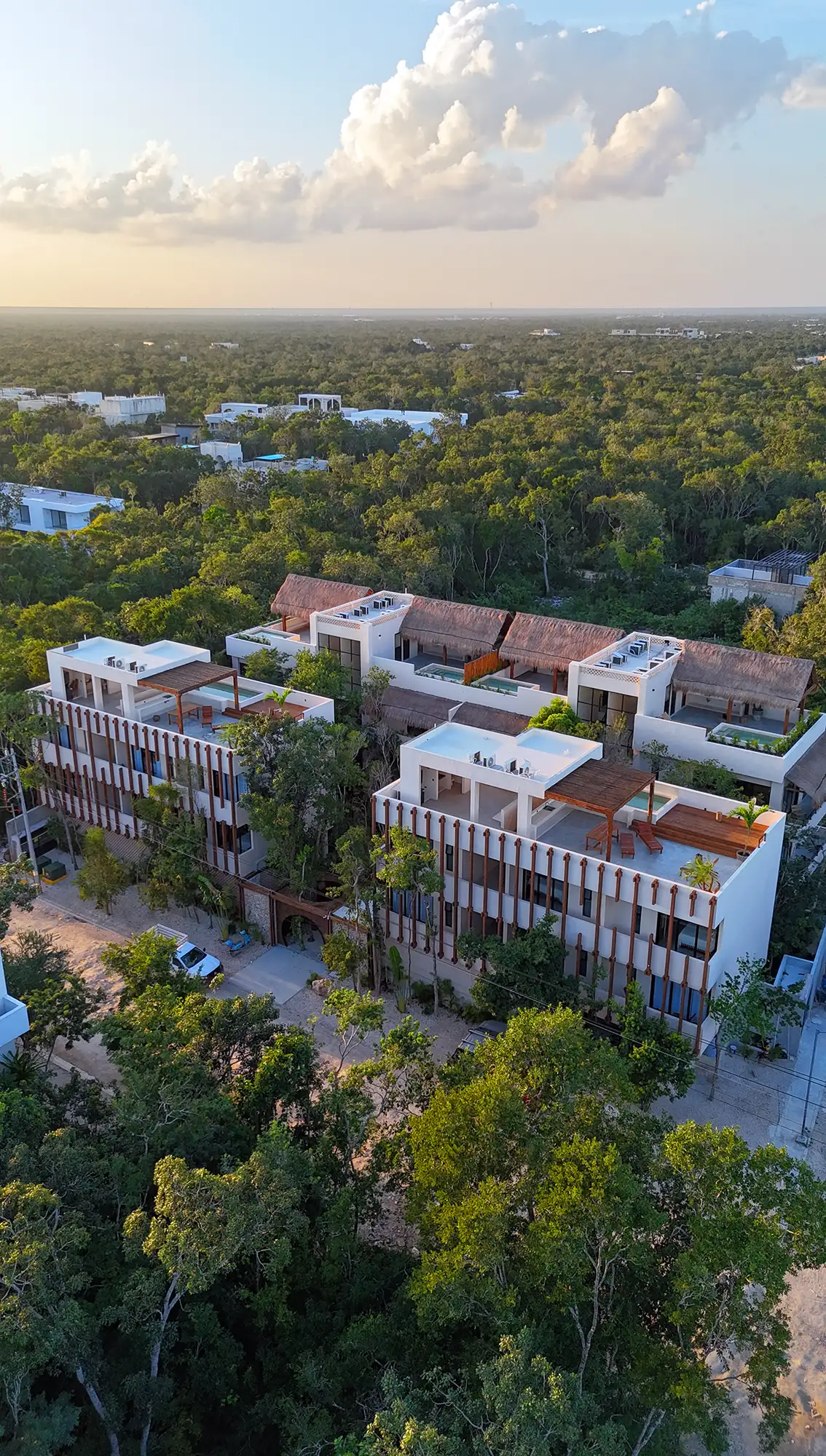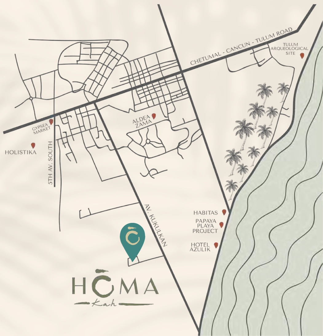 HOMA KAH is one of the most sustainable developments in Mexico. Winner of the International Property Award, it preserves over 60% of the native jungle while blending passive architecture and local materials.