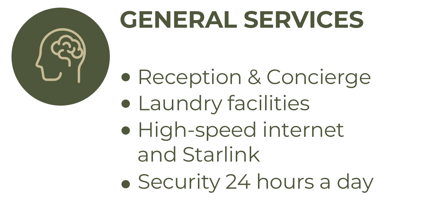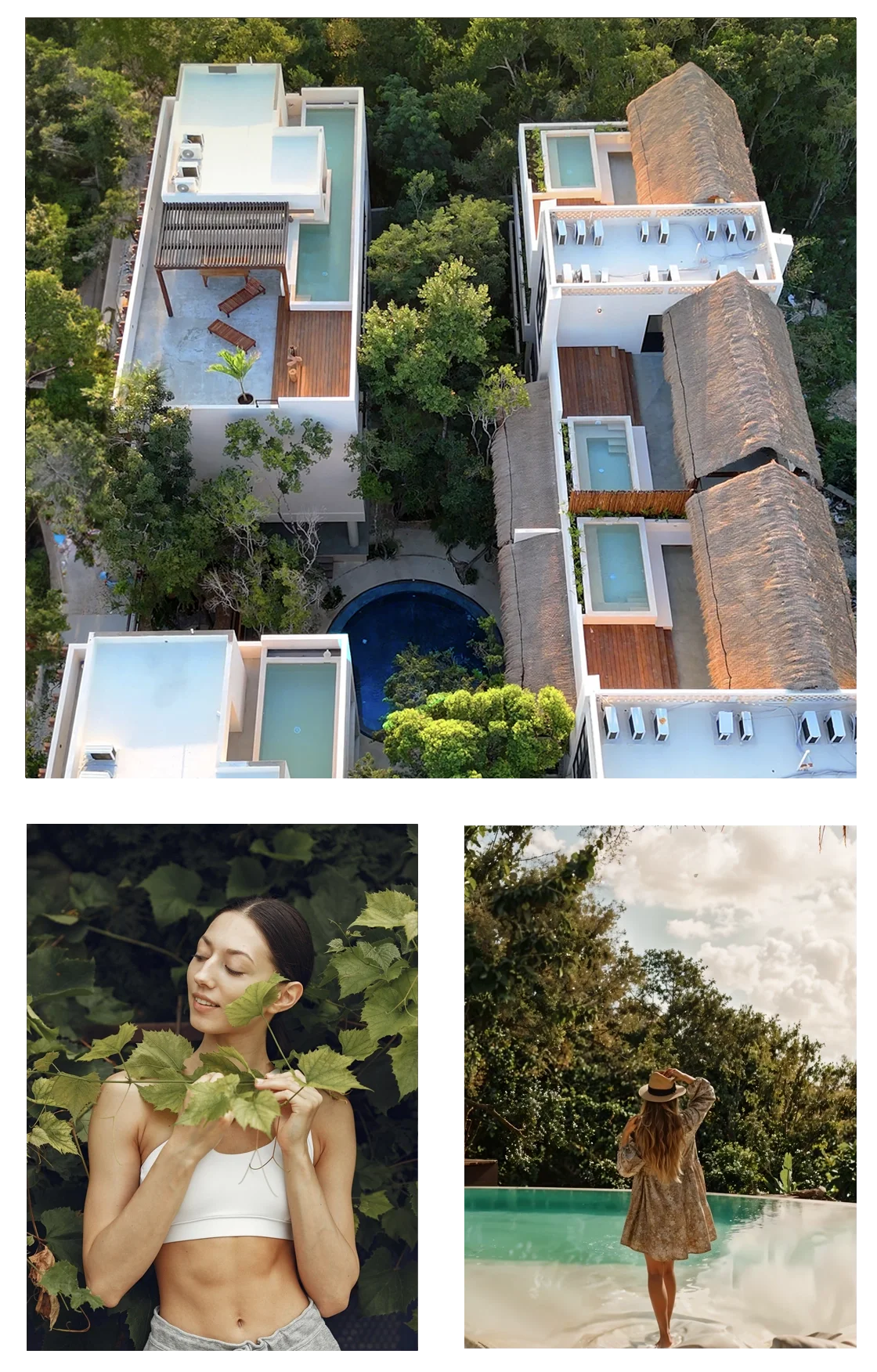 Fully equipped studios featuring a kitchen, bathroom, closet, jungle-view balcony, A/C, and signature Tulum-style decor. Includes access to a shared rooftop with laundry room, grill, solarium, designer pool, and bar.
