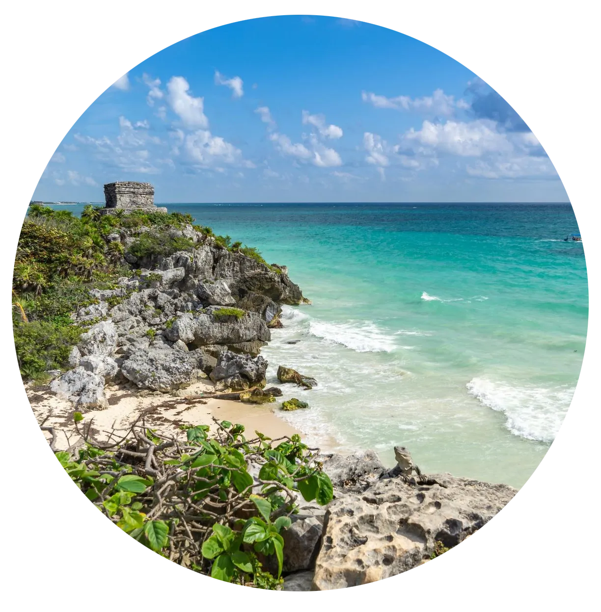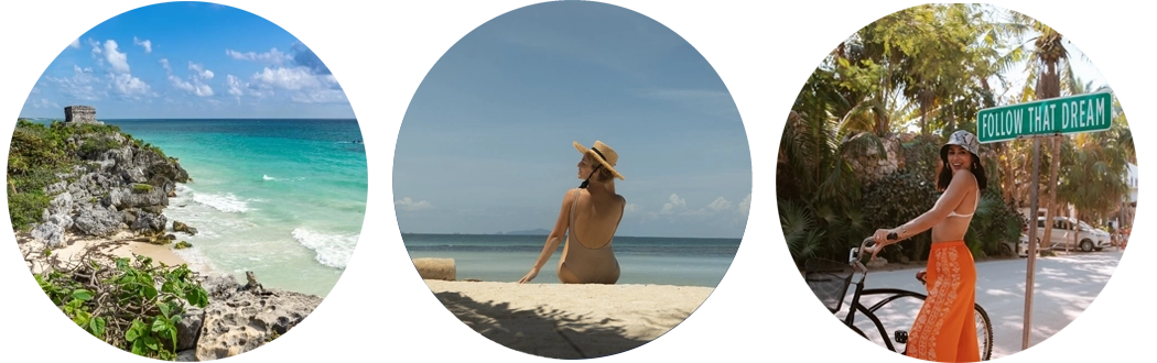 One-bedroom suite with a full bathroom, closet, and a balcony overlooking the main pool. Includes a fully equipped kitchen, A/C, and Tulum-inspired decor.